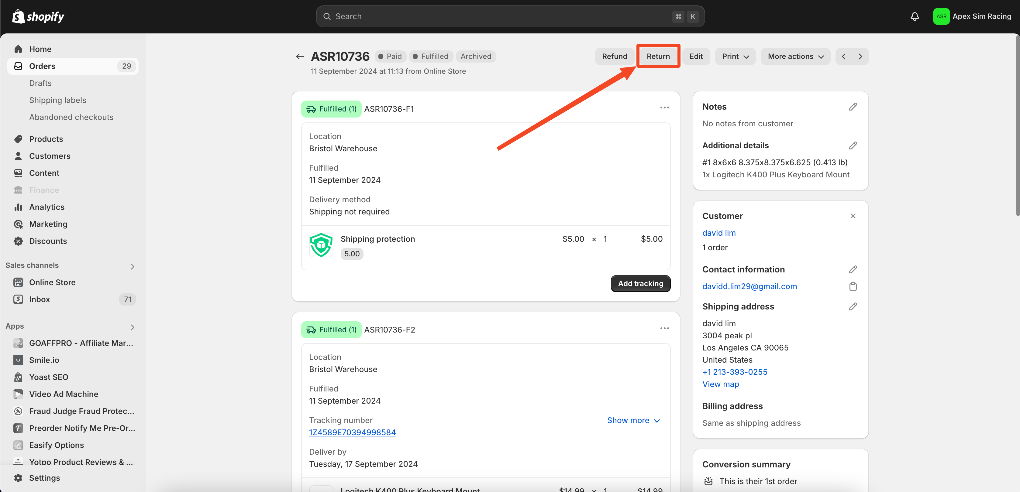 - In the Summary section, click Restocking fee or Return Shipping.