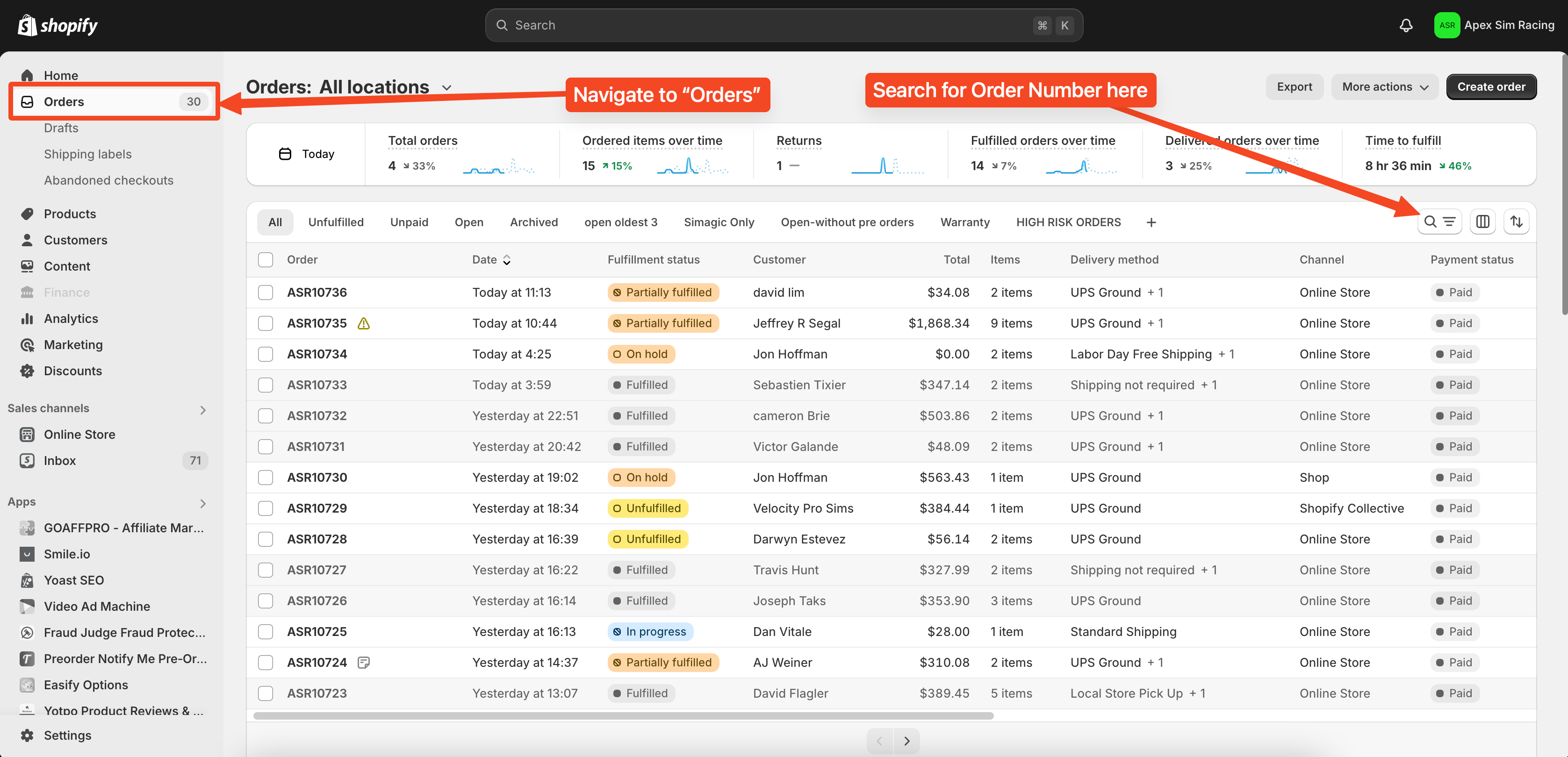 882003439642From your Shopify admin, go to Orders.