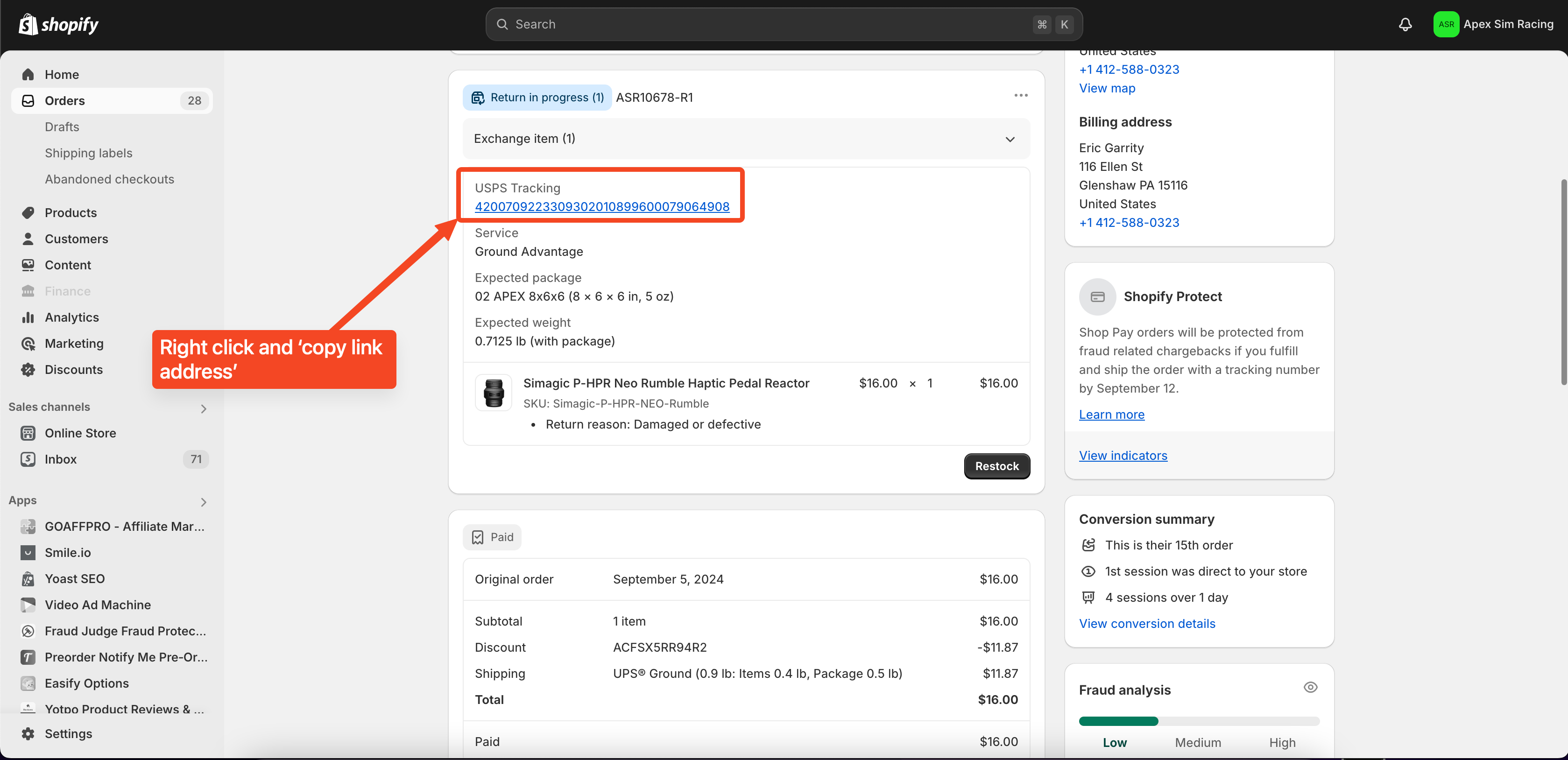 - Optional: You can also edit the restocking fee on an individual return item by clicking on the fee below the item.