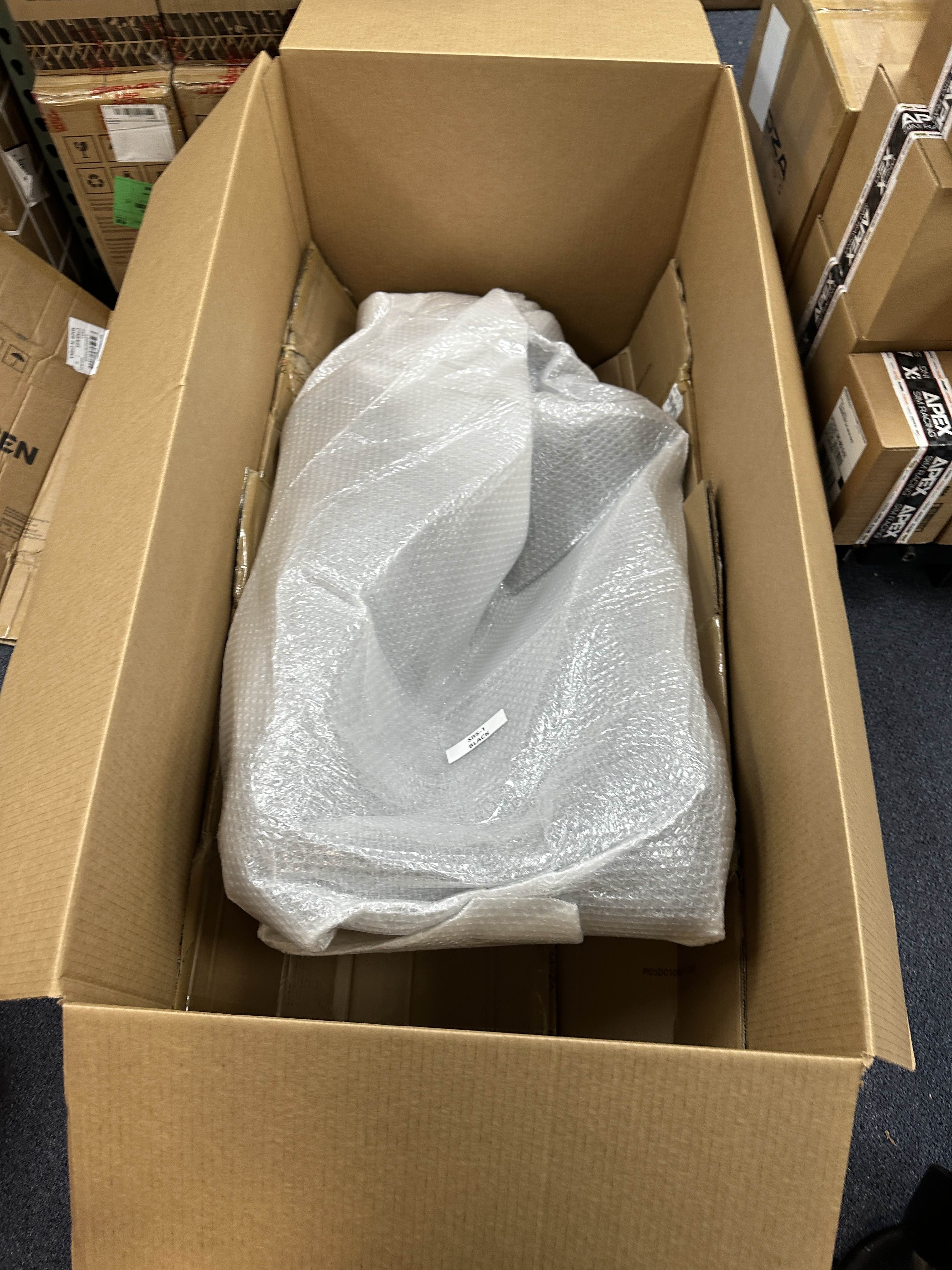This guide is for employees handling shipments of large seat boxes (48x24x24). These steps ensure that seats are securely packed and protected during shipping.