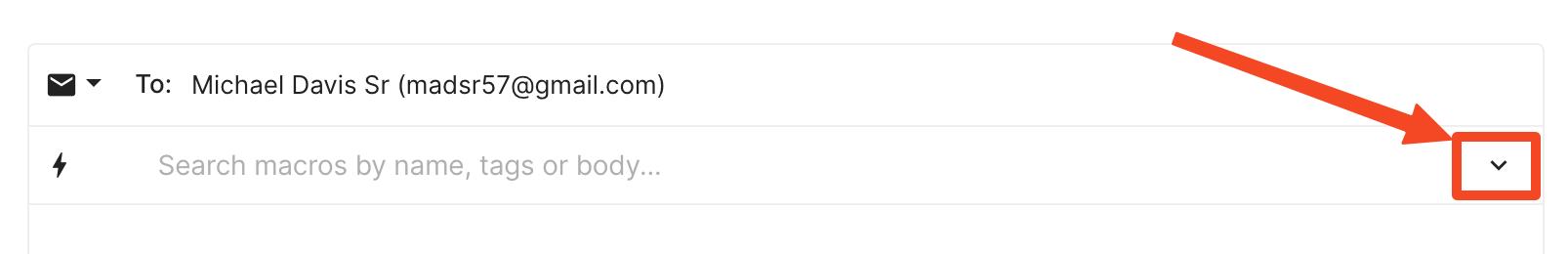 - When viewing a ticket, look for the Macros dropdown at the bottom of the ticket. Click to open the list of available macros.